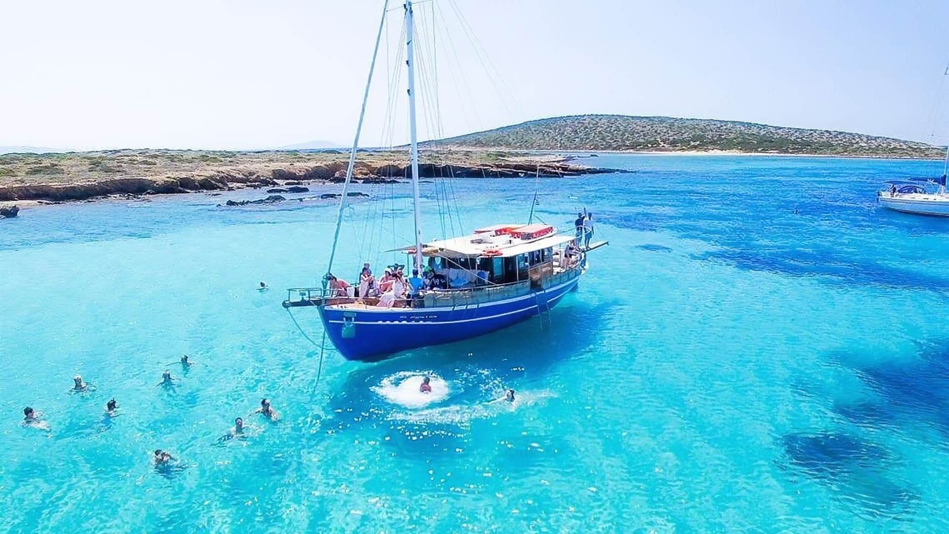 - 10:30 AM – Cruise past Panteronisi Islets (known as the Blue Lagoon). First swim stop.