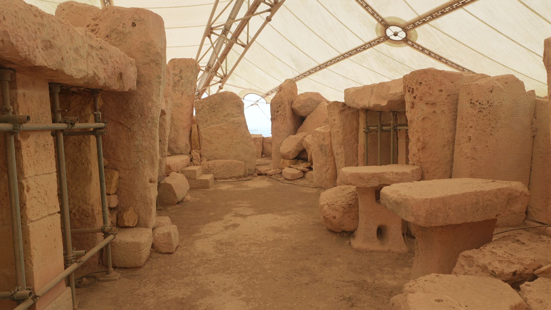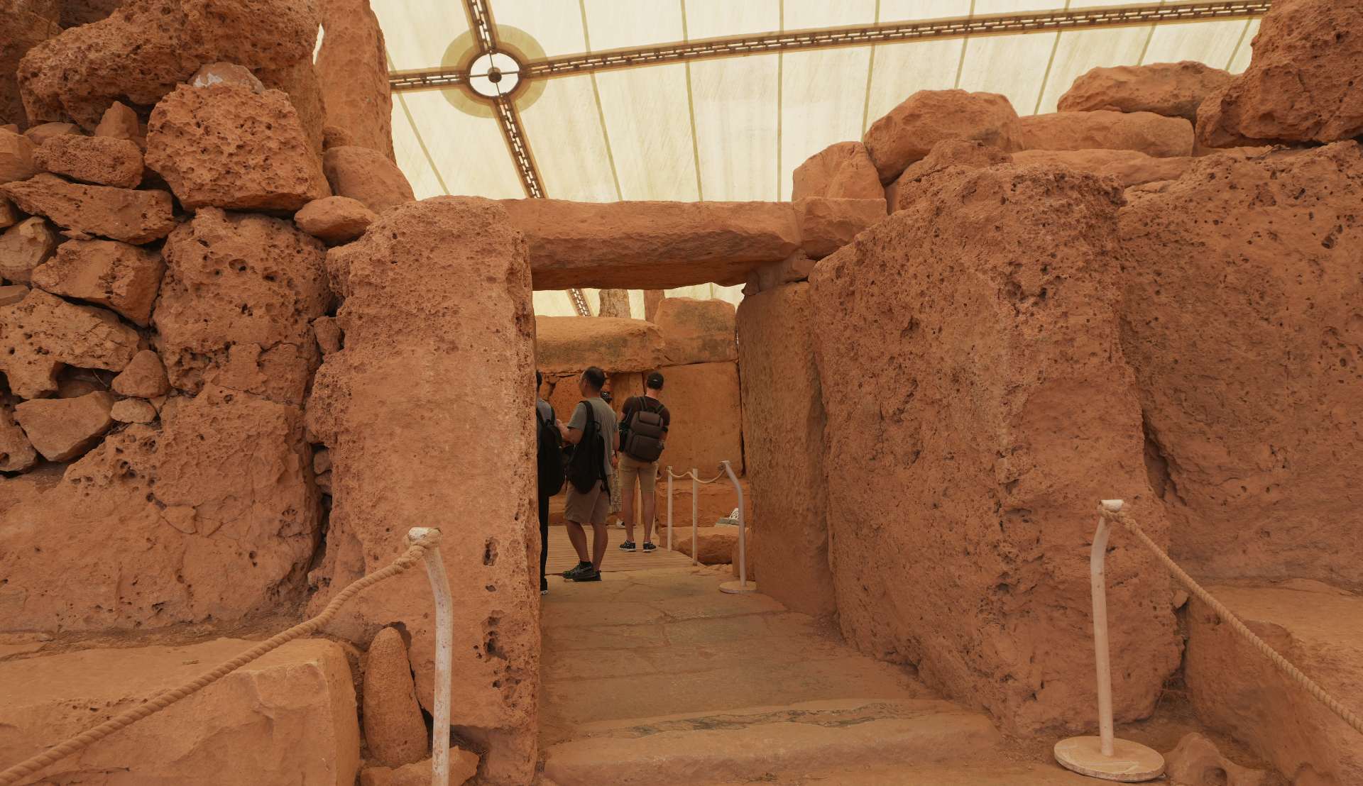 Your visit begins at the main temple, the largest and most impressive structure on the site. Built around 3600 BCE, this temple follows the classic Maltese design—a central corridor leading to a back niche, with semi-circular chambers called apses branching off each side like the petals of a stone flower.